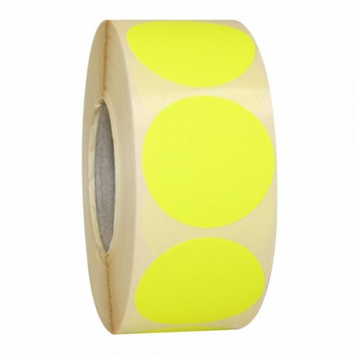 Fluor etiket prijssticker Etiket 50 mm rond geel kleefkracht permanent, aantal etiketten 1000 stuks op rol. ..